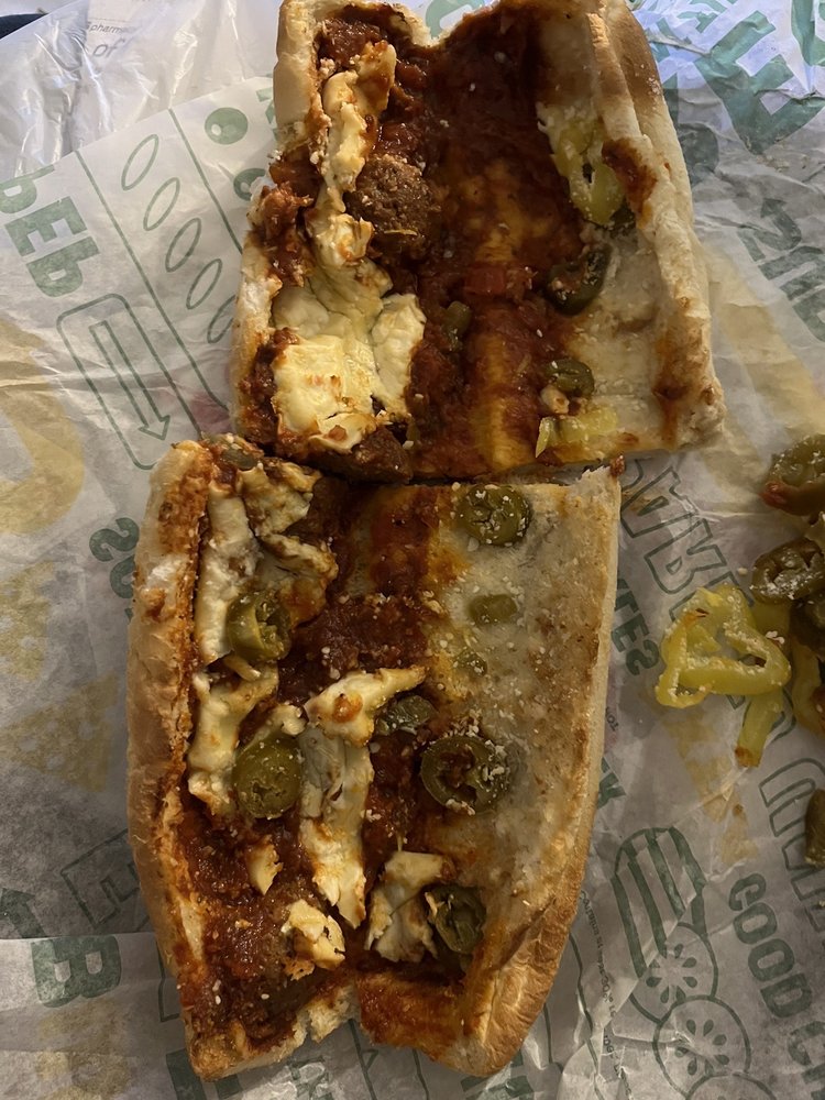 It's the mother of all meatball subs. Juicy meatballs drenched in marinara sauce with slices of pepperoni and provolone. Sprinkled with parmesan and served toasted on Italian Herbs & Cheese bread.